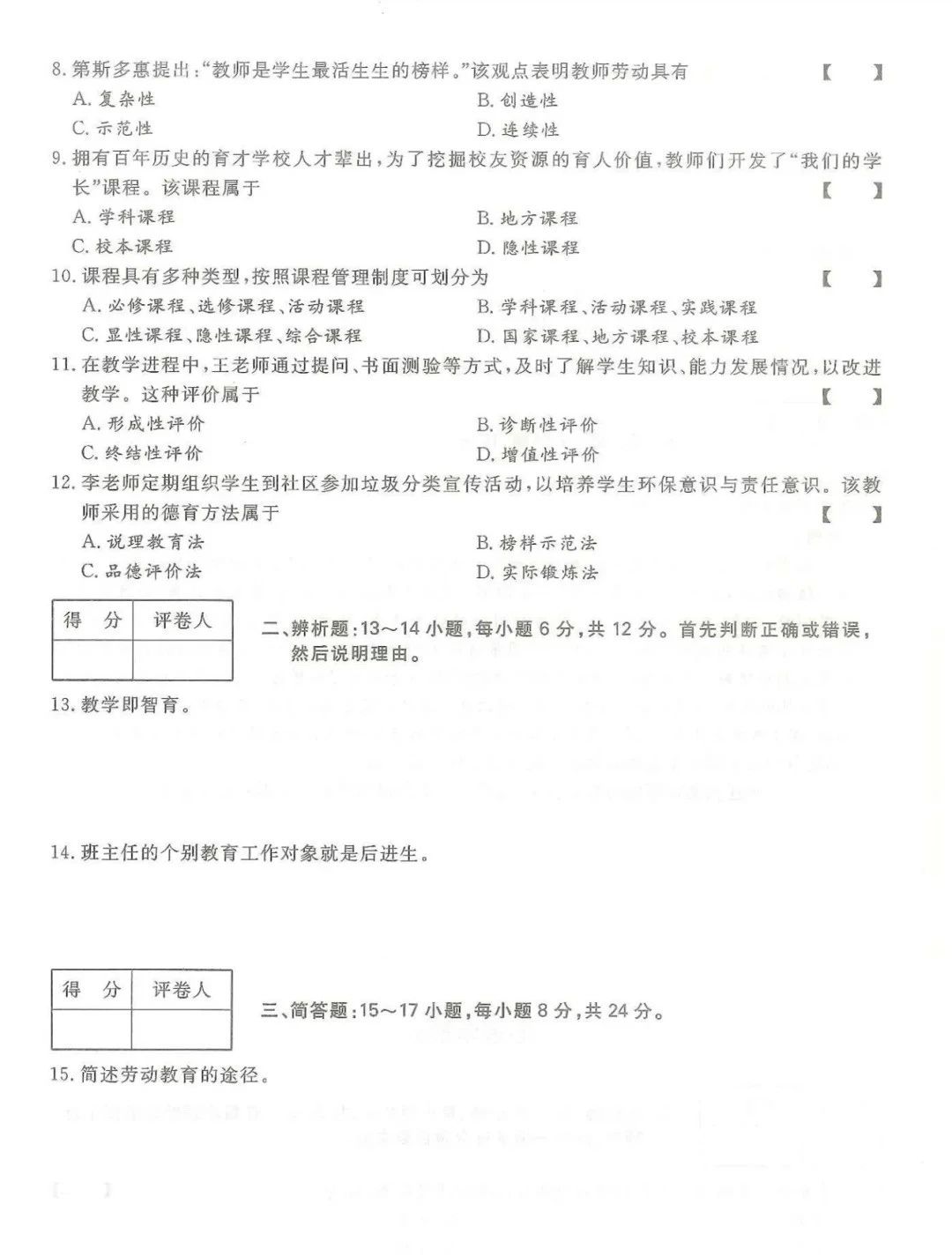 2024成考真题考卷-专升本-教育理论| 答案+解析