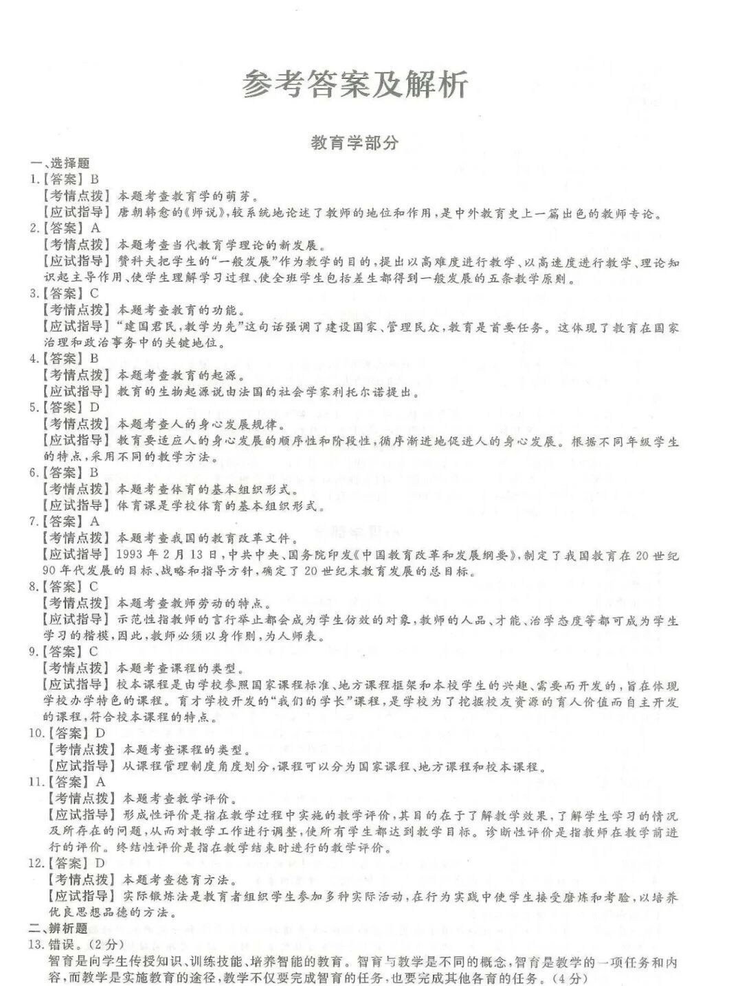 2024成考真题考卷-专升本-教育理论| 答案+解析