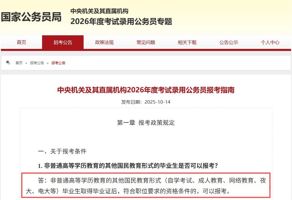 成人本科能考公考编吗?官方答案来了!一文说清报考资格和限制条件!